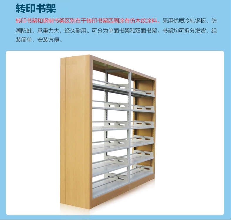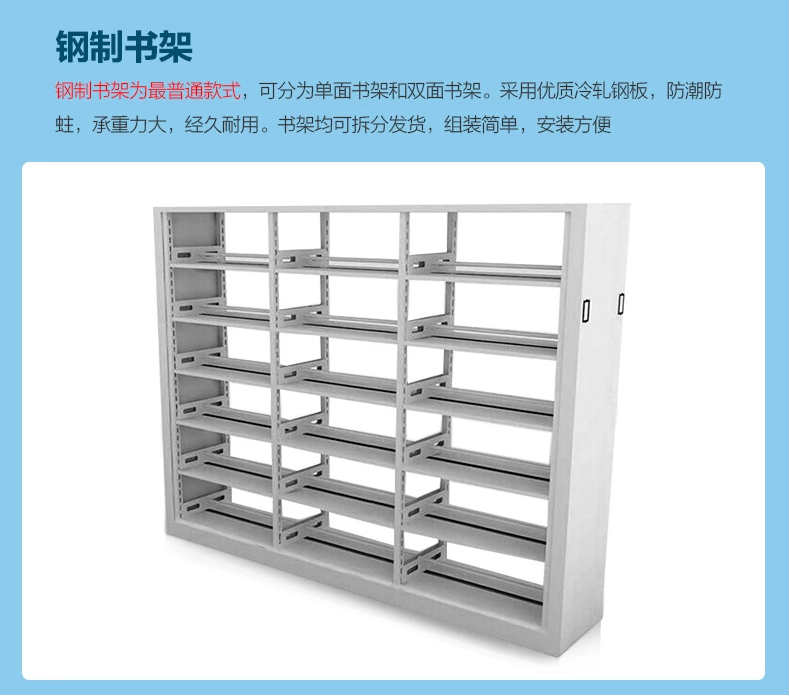 了解詳情西安圖書架又稱書架,常見於圖書館、書店、超市等(děng)地(dì)方;圖書架款式(shì)多種(zhǒng)多樣,按材料分一般分為木質圖書架和鐵質圖(tú)書架; 木質圖(tú)…